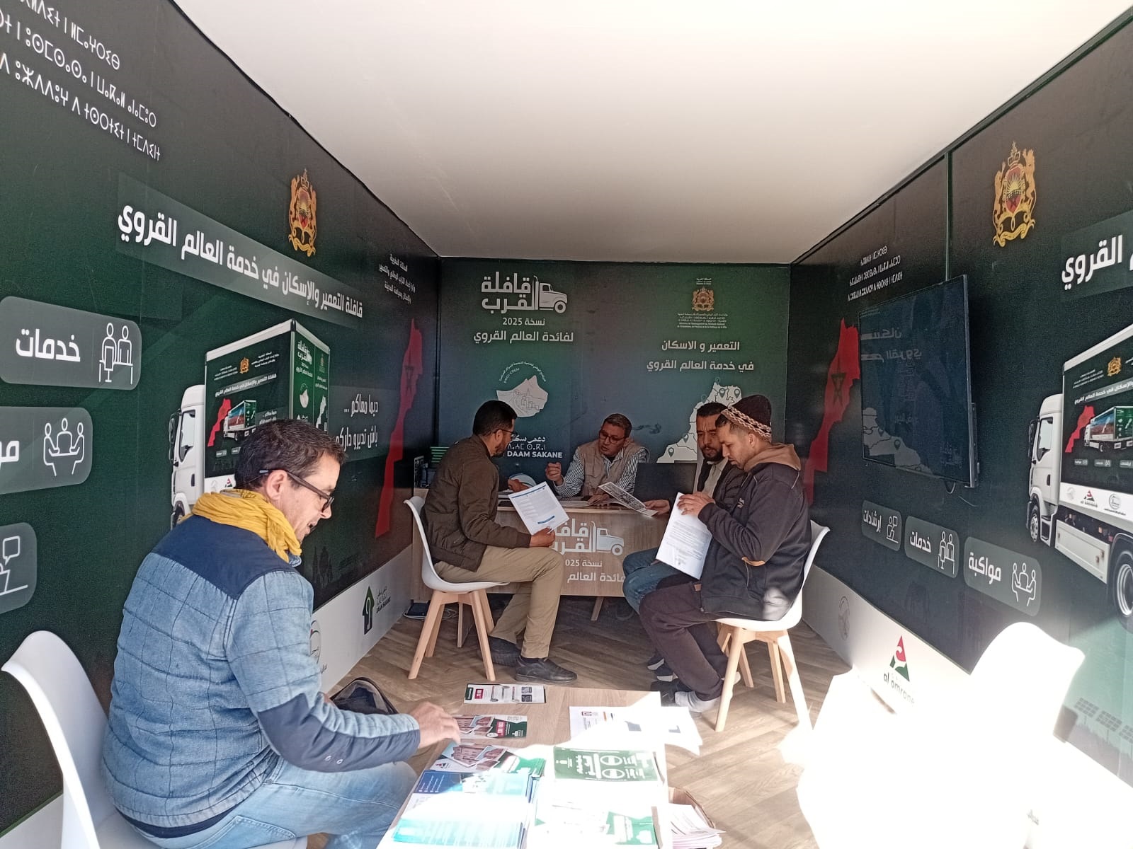 و في هدا السياق وخلال محطات مسار القافلة القرب عمل مسؤولي وأطر مكونات وزارة إعداد التراب الوطني والتعمير والإسكان على مستوى الجهوي على تنشيط هده المبادرة من خلال التواصل المباشر مع ساكنة هده الجماعات، والإنصات لإنشغالاتهم وتقديم كافة الخدمات والإستشارات المطلوبة في ميدان التعمير والبناء وبرنامج دعم السكن وتمكينهم من التسهيلات الممنوحة لفائدتهم للولوج الى مختلف المعلومات التعميرية والحصول على المساعدة التقنية بعين المكان .
