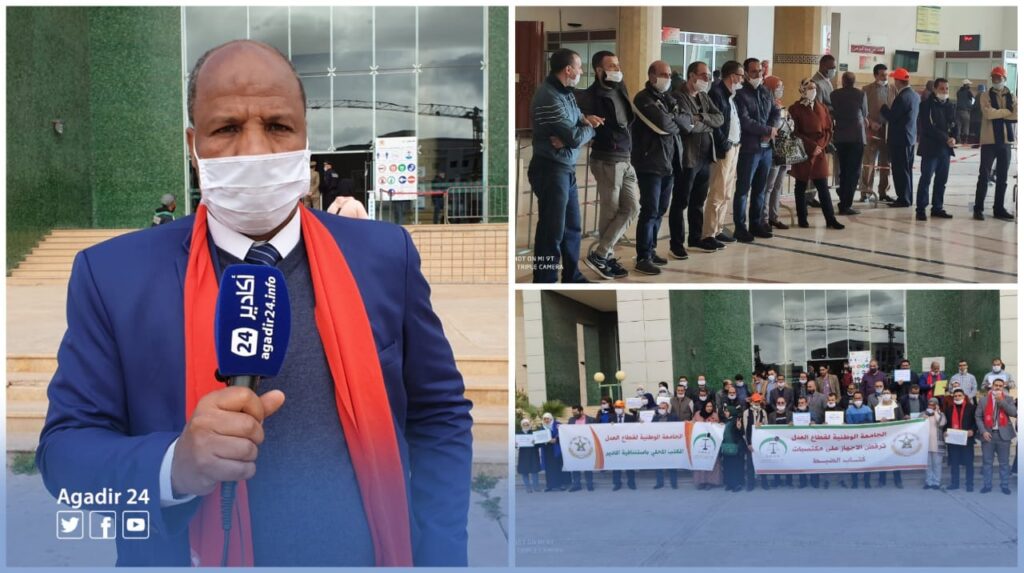 وسط حضور نوعي، حج موظفو كتابة الضبط بمحاكم أكادير وانزكان والمديرية الفرعية الإقليمية صباح اليوم إلى مقر محكمة الإستئناف باكادير حيث نفدوا وقفة احتجاجية اندارية بدعوة من نقابة الجامعة الوطنية لقطاع العدل المنضوية تحت لواء الاتحاد الوطني للشغل بالمغرب والنقابة الوطنية للعدل العضو بالكونفدرالية الديمقراطية.