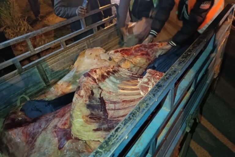 ويتعلق الأمر، بحسب ما أوردته مصادر مطلعة، بسائق دراجة نارية ثلاثية العجلات (تريبورتور) ومرافق له، حيث ضبطا متلبسين بنقل لحوم تخص ذبيحة لبقرة تزن 250 كيلوغراما.