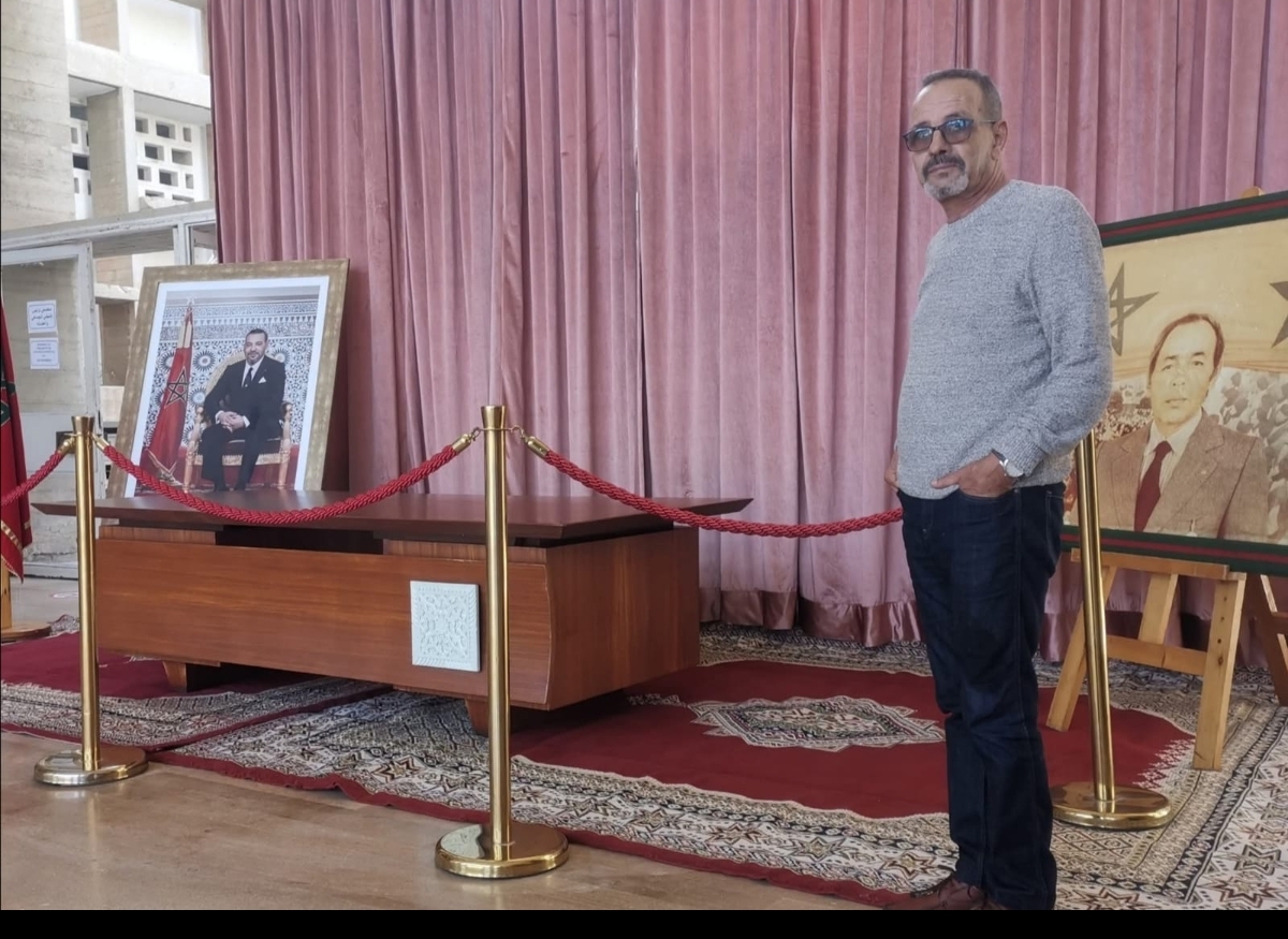 وجدت نفسي وحيداً وسط صمت ثقيل أمام مكتب خشبي جدّ متواضع.. وبخلفية قماش جدّ عادي بجانبه الصورة الحقيقية.. يتوسطها قائد المسيرة وراء اربع ميكروفونات على يساره المرحوم الأمير مولي عبد الله.. وفي الجهة الأخرى ولي العهد آنذاك سيدي محمد وأخيه الأمير مولي رشيد..