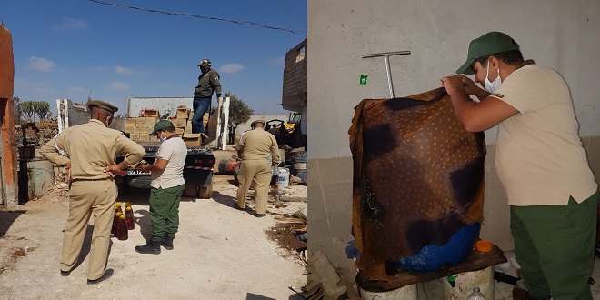 وجدير بالاشارة ان مصالح المركز القضائي لدرك بيوكرى فتحت تحقيقا في الموضوع بعد توقيف مالك المصنع الدي يعد احد اكبر الكرابة بسوس بعد حجز خمسة أطنان من ماء الحياة بمصنع سري له بايت وكمار.