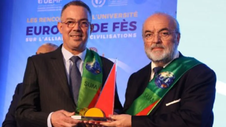 ويتعلق الأمر بكل من رئيس الجامعة الملكية المغربية لكرة القدم، فوزي لقجع، والممثل السامي لتحالف الحضارات بالأمم المتحدة، ميغيل أنخيل موراتينوس، ورئيس الجامعة الأورومتوسطية بفاس، مصطفى بوسمينة، والمغنية الفرنسية- المغربية فرانسواز أتلان، الذين ت وجوا بهذه الجوائز خلال حفل أقيم بحضور مستشار جلالة الملك، أندري أزولاي، على هامش “ملتقيات الجامعة الأورومتوسطية بفاس حول مستقبل تحالف الحضارات”، المنظمة تحت الرعاية السامية لصاحب الجلالة الملك محمد السادس، تحت شعار “إعادة بناء الثقة من أجل عالم موحد وتعددي”.