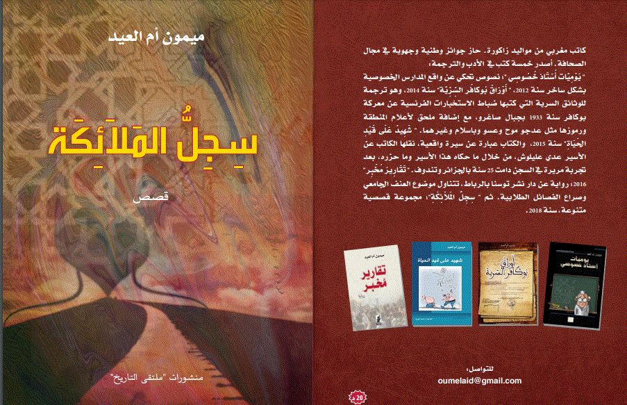 قصص كثيرة وساخرة، من بينها، “تِيخْتْ”، “حكايتي معها”، “صلاة الجمعة”، “كَهْصَعٍ تَفَقٍ لَهُوهَشٍ”، “صلاة الجمعة”. تتضمنها دفتي كتاب “سجل الملائكة” الصادر هذه الأيام للكاتب المغربي ميمون أم العيد، والذي يعد الإصدار الخامس للكاتب والصحفي بجريدة هسبريس الإلكترونية، بعد كل من “يوميات أستاذ خصوصي”، “أوراق بوكافر السرية”، “شهيد على قيد الحياة”، و” تقارير مخبر”.
