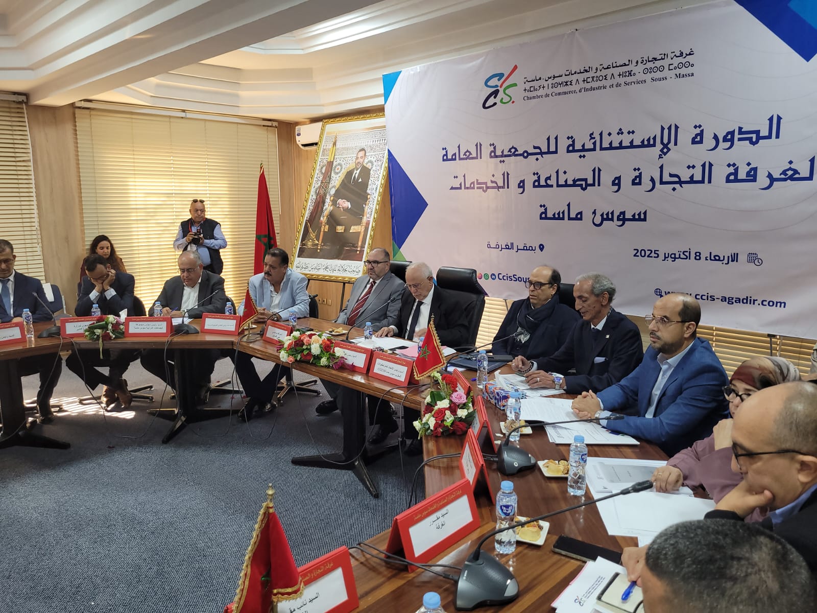 يذكر أن غرفة التجارة والصناعة والخدمات سوس ماسة عقدت الدورة الاستثنائية للجمعية العامة لغرفة التجارة والصناعة والخدمات سوس ماسة، يوم الأربعاء 8 أكتوبر 2025 وفق جدول الأعمال الآتي: