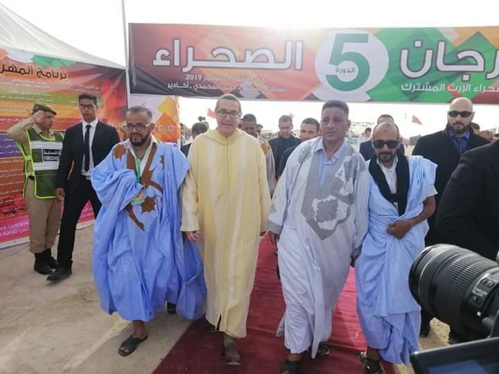 و قدم هذه الهدية لجلالته، رئيس المنتدى الوطني لشباب الصحراء محمد بخاري و عضو المنتدى سعيد افكريش ومدير مهرجان الصحراء سالم خويلة مباشرة بعد انتهاء النسخة الرابعة للمهرجان.
