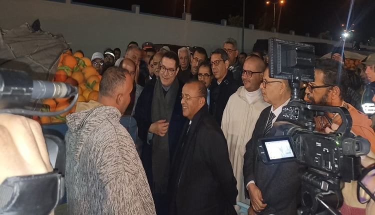علمت أكادير 24 من مصادرها العليمة بأن والي جهة سوس ماسة عامل عمالة أكادير إداوتنان، أحمد حجي، حل رفقة عامل عمالة إنزكان أيت ملول، اسماعيل أبو الحقوق، فجر اليوم الجمعة 10 فبراير 2023 بسوق الجملة للخضر والفواكه بإنزكان.