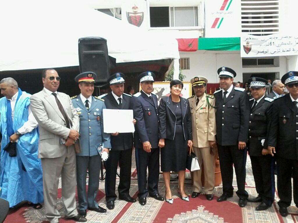 خلدت أسرة الأمن الوطني بولاية أمن أكادير، اليوم الخميس 18 ماي، الذكرى الـــ61 لتأسيس المديرية العامة للأمن الوطني، التي تصادف 16 ماي من كل سنة، في حفل ترأسته السيدة والي جهة سوس ماسة عامل عمالة أكادير إداوتنان، بحضور أعضاء السلك القضائي والضباط السامون بمختلف الهيئات العسكرية والأمنية ورؤساء المصالح الخارجية، والمنتخبون وفعاليات المجتمع المدني، بالإضافة إلى أطر وموظفي الامن الوطني الممارسون منهم والمتقاعدون.