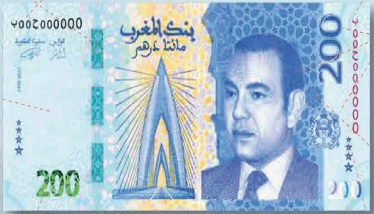 وذكر بلاغ لبنك المغرب أن الورقة البنكية الجديدة من فئة 200 درهم، تسلط الضوء على التطور الاقتصادي والصناعي المحرز تحت القيادة الرشيدة لصاحب الجلالة الملك محمد السادس، وتجسد التصاميم المختارة تيمات البنية التحتية والصناعة والتطور.
