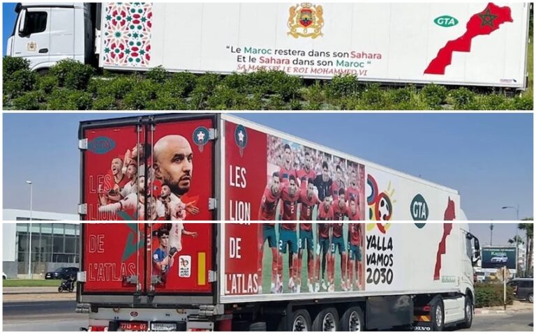 وتابع: “إننا نشتغل كفاعلين اقتصاديين وجمعويين في إطار الدبلوماسية الموازية، ونضع كل إمكانياتنا المادية والمعنوية من أجل القضية الوطنية الأولى، تحت القيادة الرشيدة لصاحب الجلالة الملك محمد السادس، نصره الله، فقد جاءت فكرة تسخير هذا الأسطول من أجل حملة دعاية للمغرب ولقضيته إيمانا منا بفعالية وقوة التأثير البصري للرموز والشعارات التي تم اختيارها بدقة وعناية وكذا بأماكن وضعها على واجهات الشاحنات”.