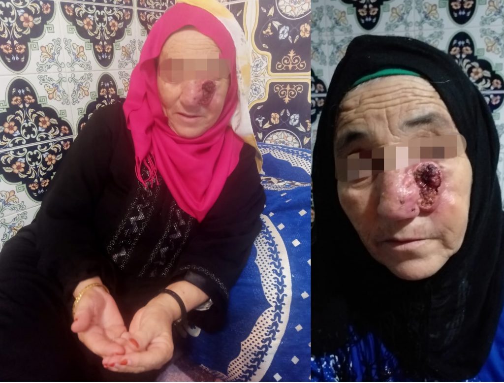تعاني السيدة فاطمة التي تنحدر من دوار بيفخشو بجبال ايموزار اداوتنان التابع لعمالة أكادير اداوتنان من ورم خبيت أصاب الجهة اليسرى من وجهها و الخطير أنه يقترب من عينها و يسبب لها ألما فضيعا لا تستطيع النوم بسببه .