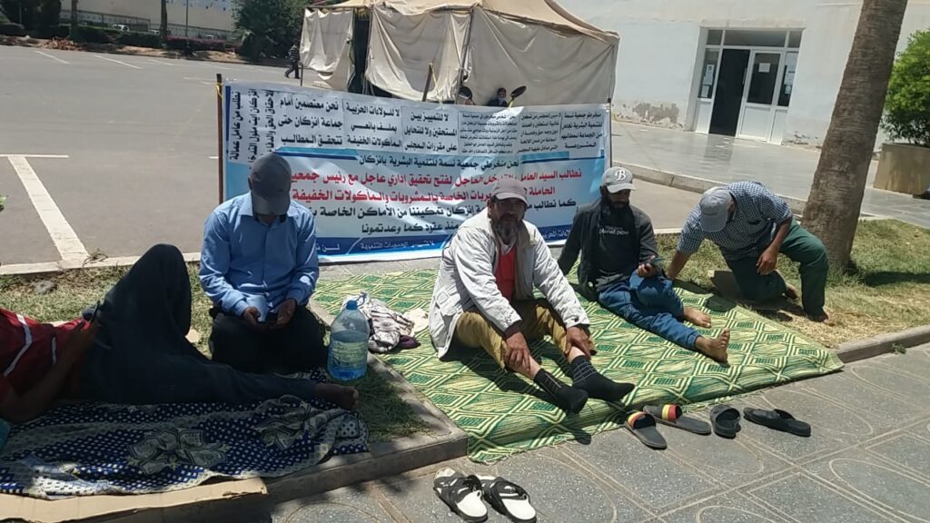 يعتصم أمام جماعة إنزكان لليوم الثامن على التوالي 7 من المنخرطين في جمعية نسمة للتنمية البشرية، وذلك بعد تعثر مطالبهم الخاصة بالاستفادة من مشروع العربات الخاصة بالمشروبات والأكلات الخفيفة.