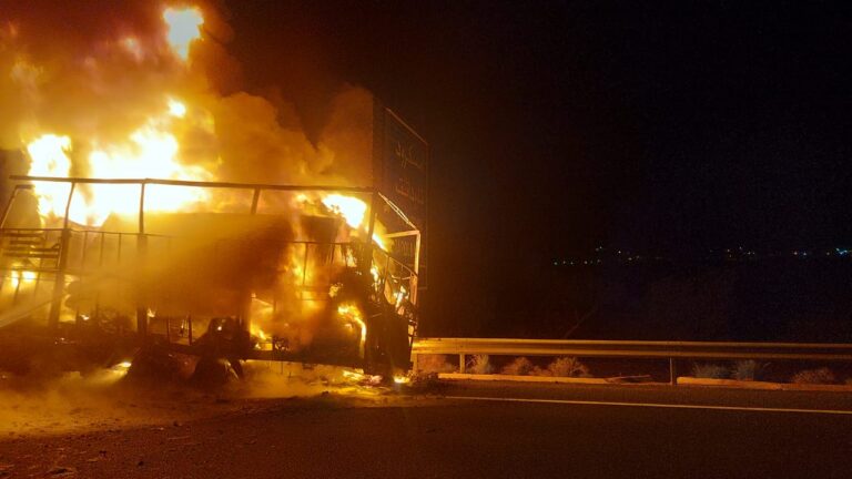 ركاب ينجون من موت محقق إثر التهام النيران حافلة كانوا على متنها