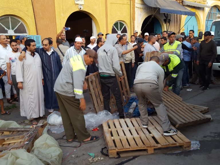 بالفيديو: حملة غير مسبوقة لتحرير الملك العمومي بتيزنيت، وعناصر الشرطة تحجز “جنوية ” خلال الحادث.