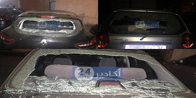 بالصور و الفيديو: “مقرقب” يهشم زجاج 13 سيارة بأكادير وسط استياء المالكين.