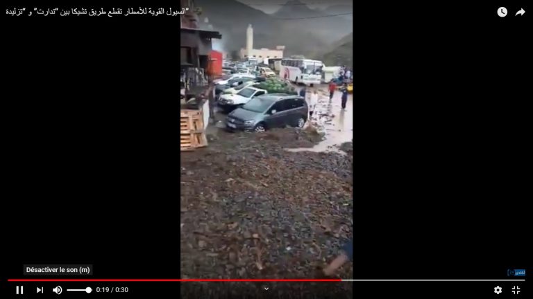 فيديو…السيول القوية للأمطار تقطع طريق تشيكا بين “تدارت” و “تزليدة”